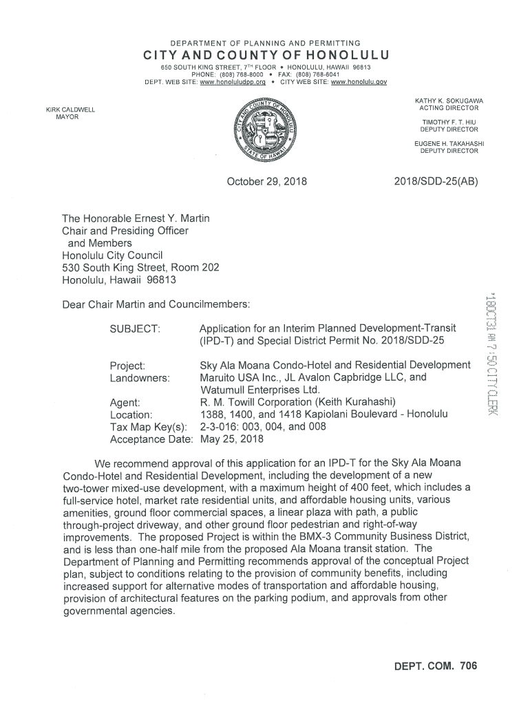 DEPARTMENT OF PLANNING AND PERMITTIVITY AND COUNTY OF HONOLULU 650 SOUTH KING STREET, 7TH FLOOR HONOLULU, HAWAII 96813 PHONE (808) 768.8000 FAX (808) 7686041 DEPT Website WWW Honolulu org CITY Website