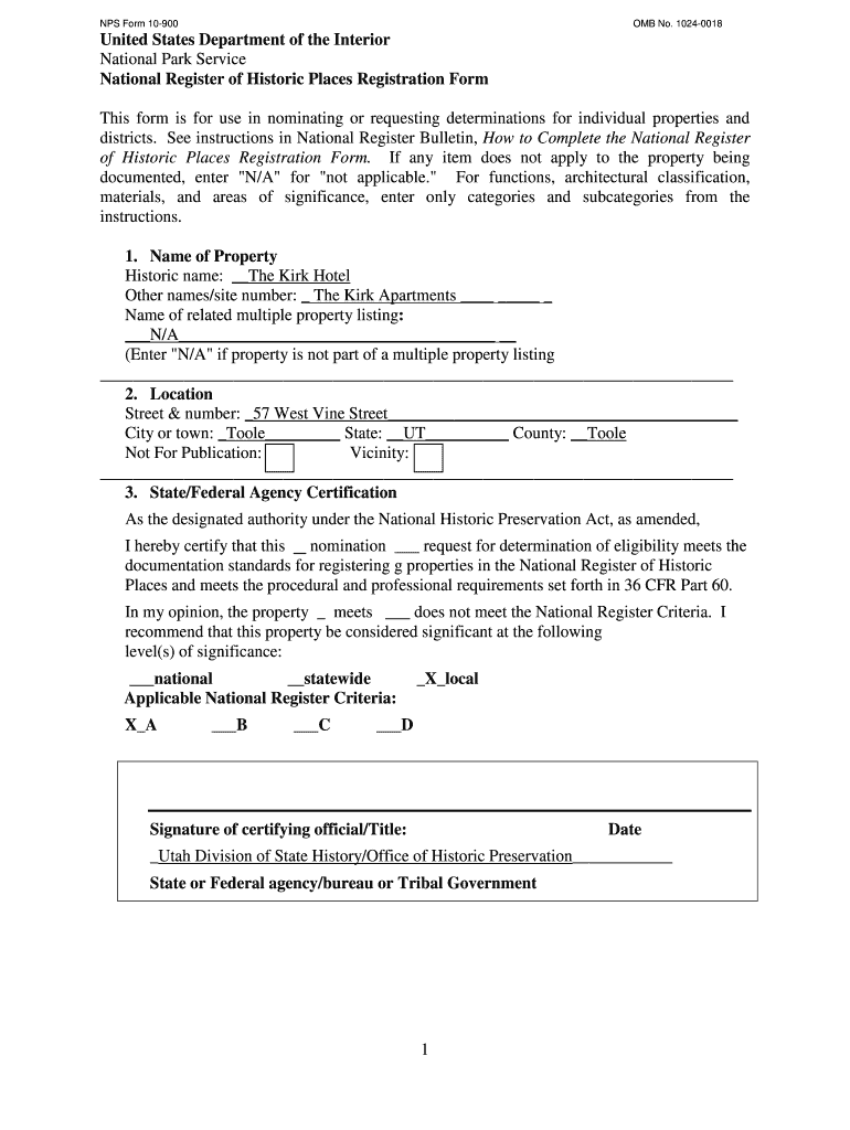 NPS Form 10900OMB No. 10240018United States Department of the Interior National Park Service National Register of Historic Places Registration Form This form is for use in nominating or requesting