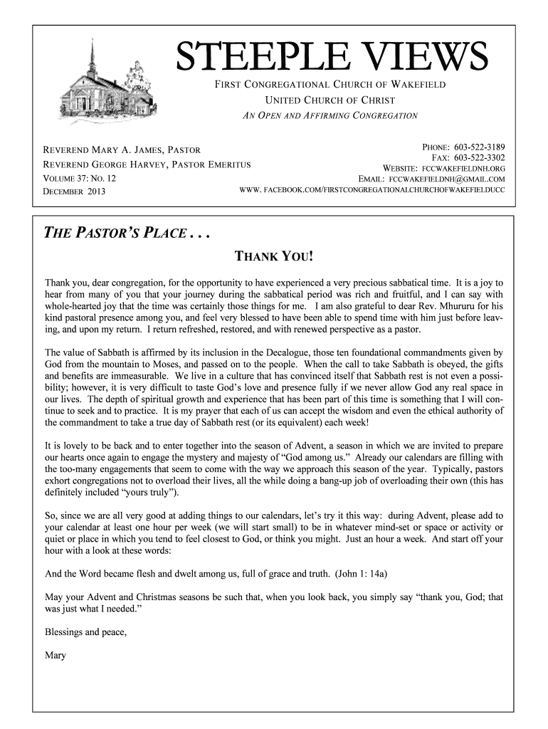 F FIRST C CONGREGATIONAL C CHURCH OF W WAKEFIELD U NOTED C CHURCH OF C CHRIST A O PRADA AFFIRMING C CONGREGATION REVEREND M ARY A. J AMES, P ASTOR R REVEREND G GEORGE H HARVEY, P ASTOR E MERITS VOLUME
