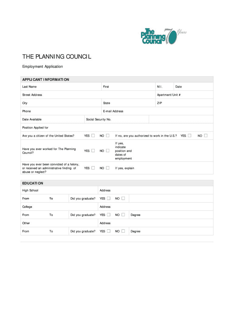 Get the free The Planning Council Employment Application