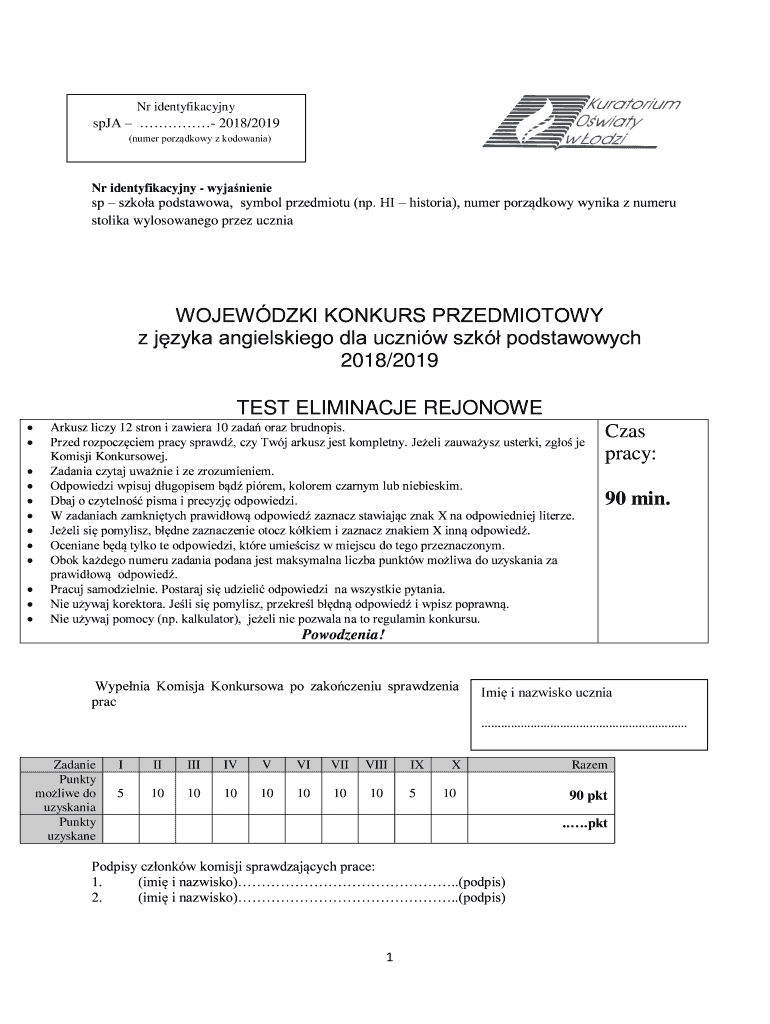 NR identyfikacyjnyspJA 2018/2019 (number porzdkowy z monomania)NR identyfikacyjny wyjanieniesp Samoa podstawowa, symbol przedmiotu (NP. HI historian), number porzdkowy Anika z number stolid wylosowanego