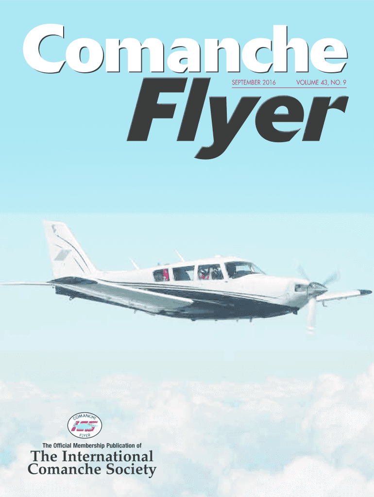 SEPTEMBER 2016The Official Membership Publication the International Comanche SocietyVOLUME 43, NO. 9The Comanche Flyers the official monthly member publication of international Comanche Society. O.