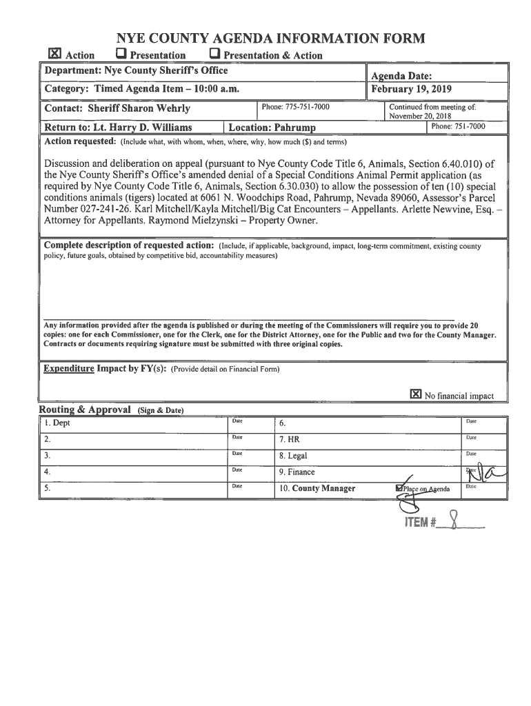 Get the free NYE COUNTY AGENDA INFORMATION FORM Action U Presentation U ...