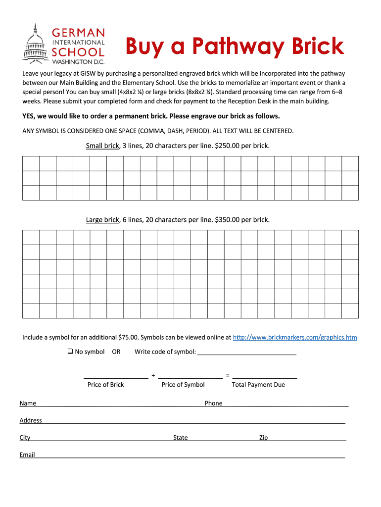 To fill out a buy a pathway brick, individuals can visit the website or location where the bricks are being sold, choose their desired brick size and customization, and make the purchase.