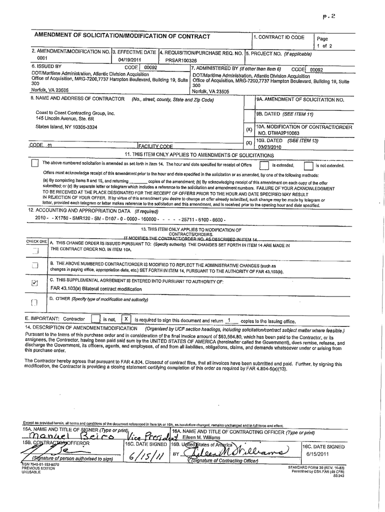 6/15/2011AMENDMENT OF SOLICITATION/MODIFICATION OF CONTRACT1 of 2101. CONTRACT ID CODE Page