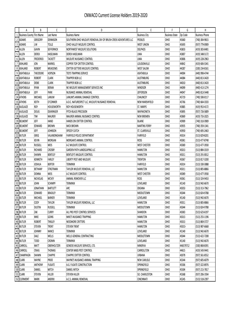 CNW ACO Current License Holders 20192020