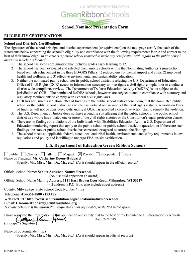 School Nominee Presentation Form