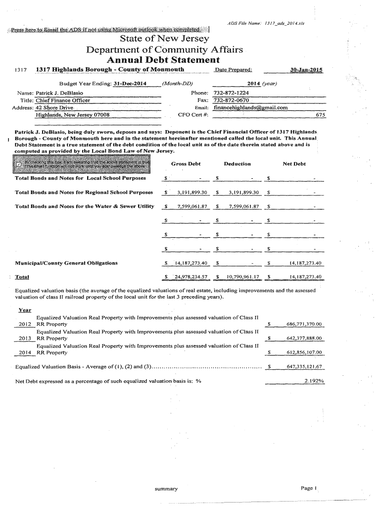 ADS File Name: /3!7 ads 2014.x/SI State of New Jersey Department of Community Affairs Annual Debt Statement.:i 'less hereto:.LIM. I tread if not King. Oiosoftoutfool ;. Given 'omP1eted,’t '1317l3!IJ:!igblllllf!.