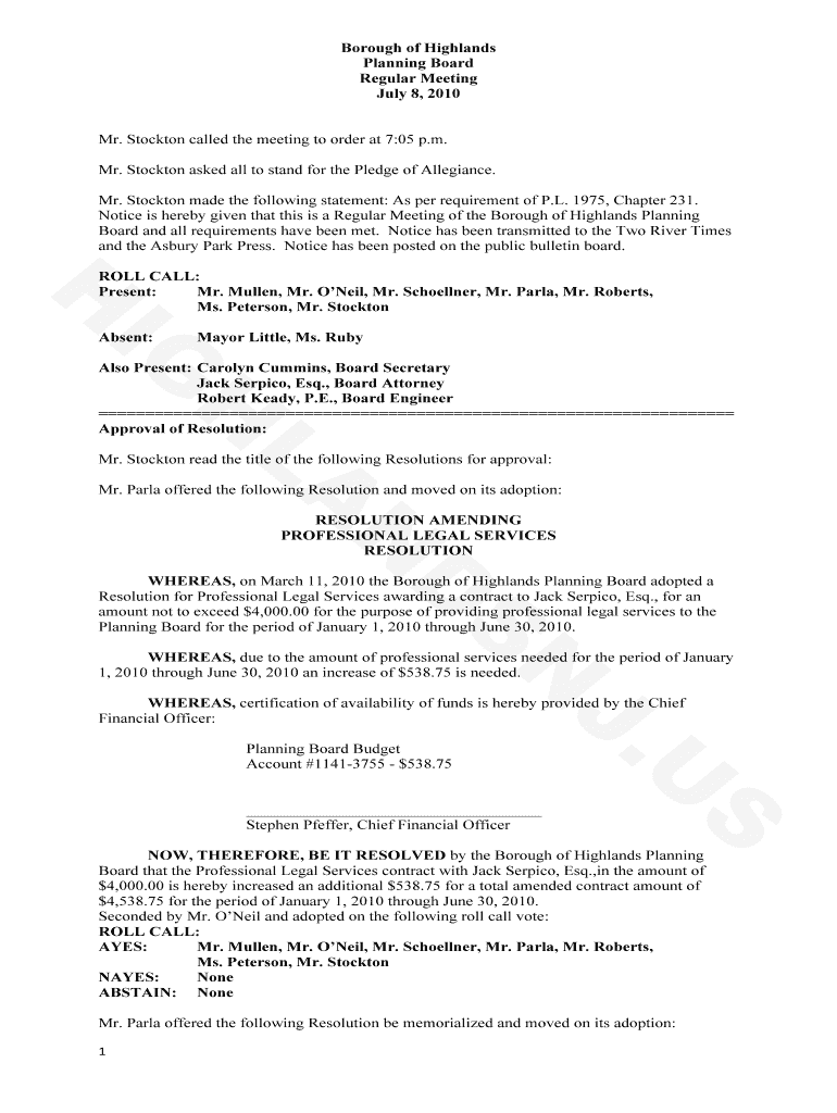 Mr. Stockton called the meeting to order at 7:05 p.m.