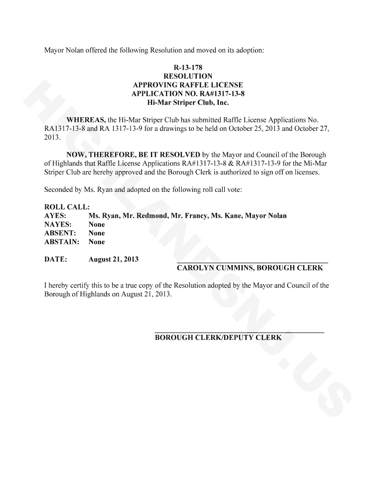Get, Create, Make and Sign r-13-178 resolution approving raffle