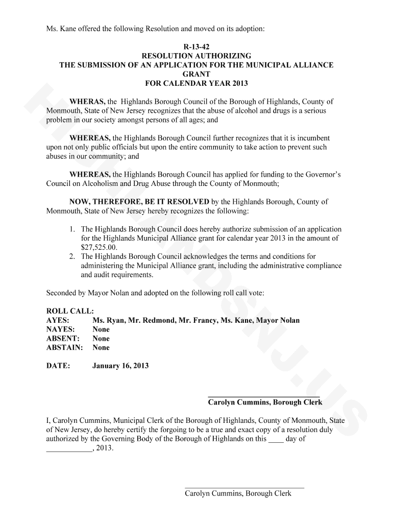 THE SUBMISSION OF AN APPLICATION FOR THE MUNICIPAL ALLIANCE