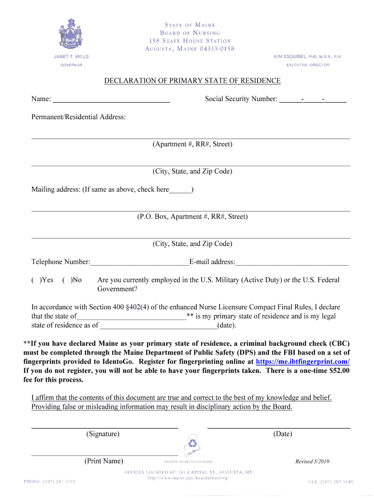 Get the free Declaration of Primary State of Residence Form - Maine.gov