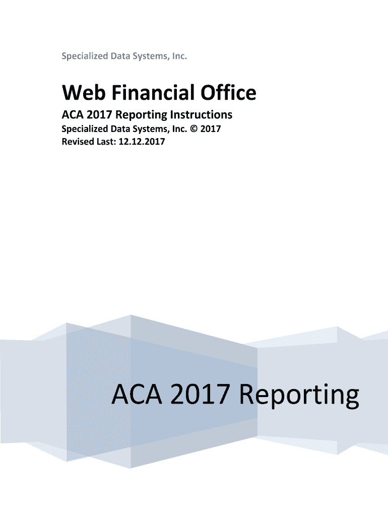 Specialized Data Systems, Inc. Web Financial Office ACA 2017 Reporting Instructions Specialized Data Systems, Inc. 2017 Revised Last: 12.12.2017ACA 2017 ReportingSpecialized Data Systems SDS ACA 2017