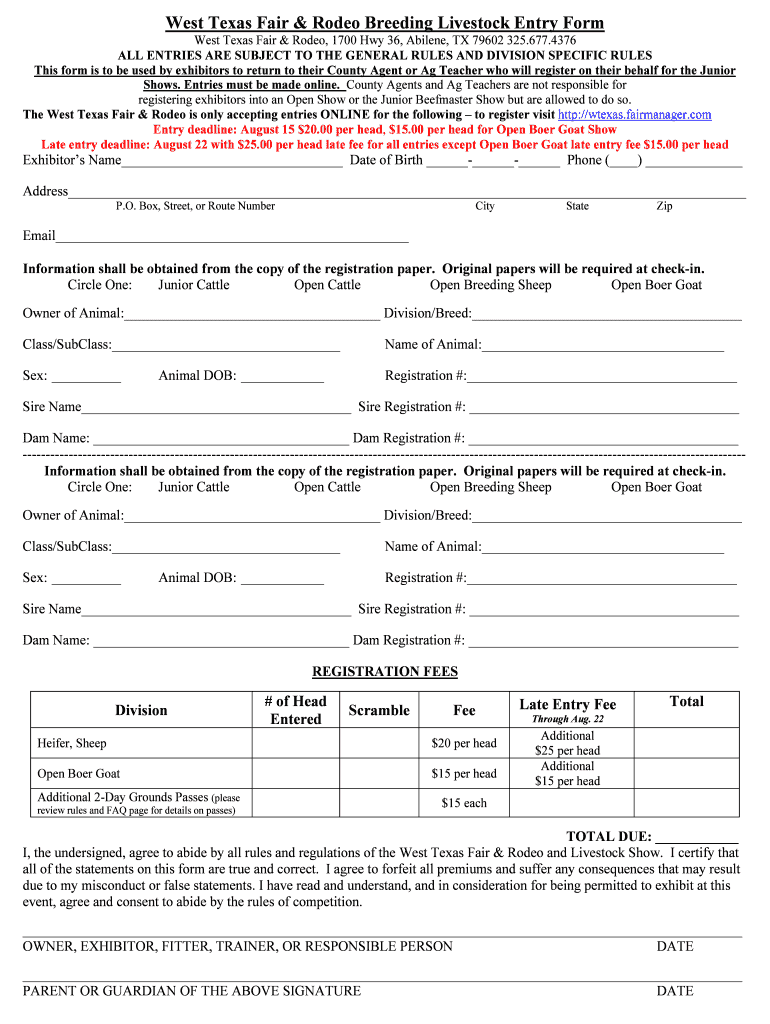 Get the free West Texas Fair & Rodeo Breeding Livestock Entry Form