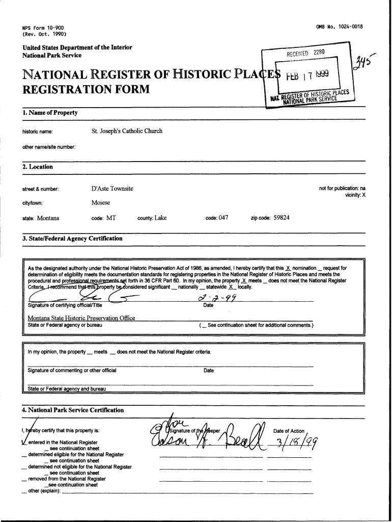 0 MB No. 10240018NFS Form 10900 (Rev. Oct. 1990)United States Department of the Interior National Park ServiceRECEIVED 2280NATIONAL REGISTER OF HISTORIC PLA :E REGISTRATION FORM 1. Name of Property