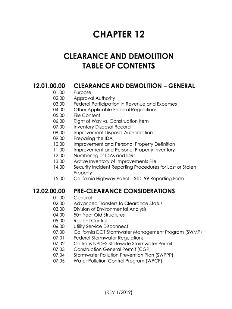 CHAPTER 12 CLEARANCE AND DEMOLITION TABLE OF CONTENTS 12.01.00.00 01.00 02.00 03.00 04.00 05.00 06.00 07.00 08.00 09.00 10.00 11.00 12.00 13.00 14.00 15.0012.02.00.00 01.00 02.00 03.00 04.00 05.00