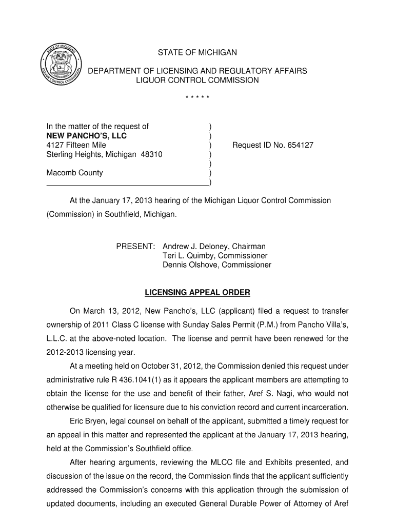 DEPARTMENT OF LICENSING AND REGULATORY AFFAIRS