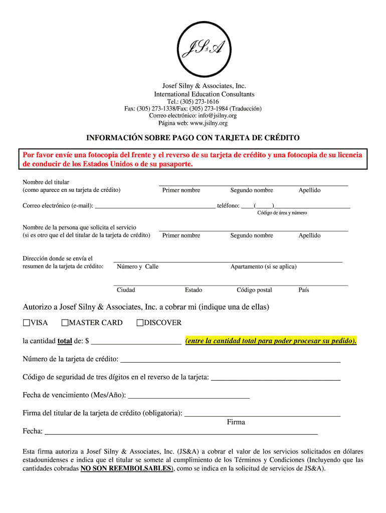 Get the free Pago con Tarjeta de Crdito - Josef Silny & Associates, Inc.