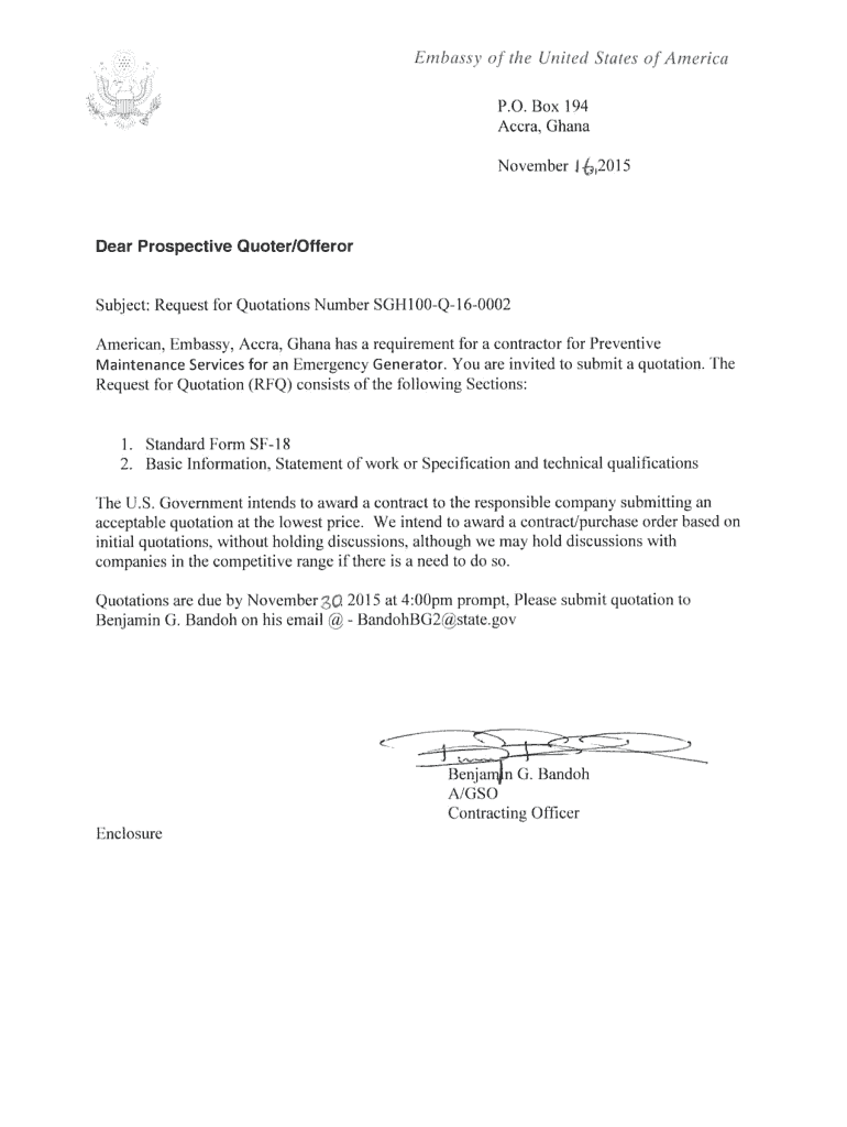 REQUEST FOR QUOTATIONS (THIS IS NOT AN ORDER) 1. REQUEST NO.2. DATE ISSUEDSGH10016Q0002PAGETHIS RFQ IS x IS NOT A SMALL BUSINESSMAN PURCHASE SEASIDE (52.2194) 3. REQUISITION/PURCHASE REQUEST NO.11/16/2015OF