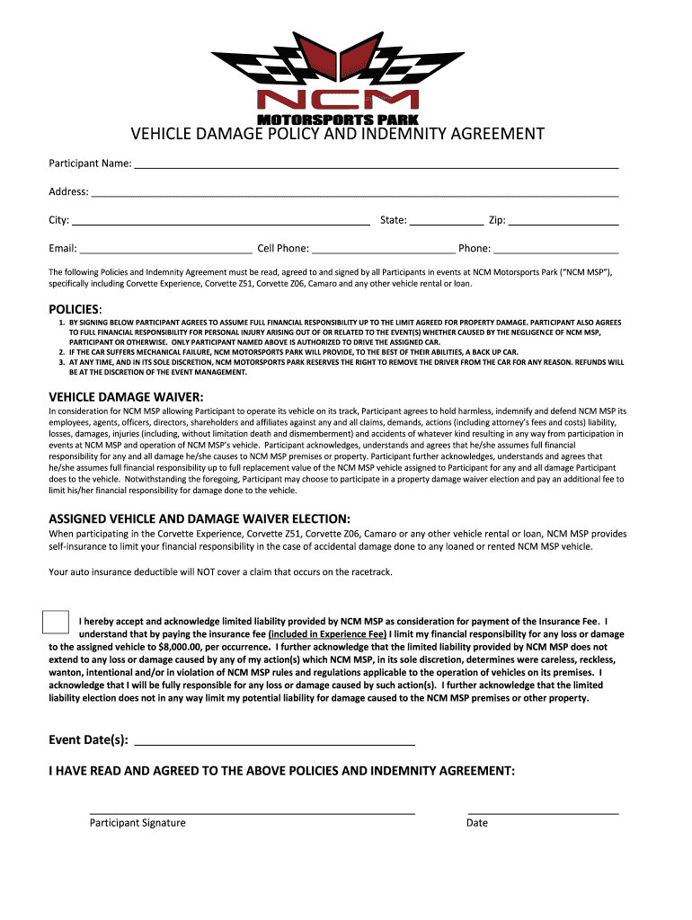 Get the free Vehicle Damage Policy and Indemnity Agreement - NCM ...
