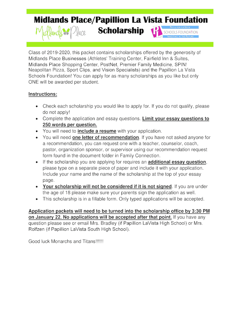 Class of 20192020, this packet contains scholarships offered by the generosity of