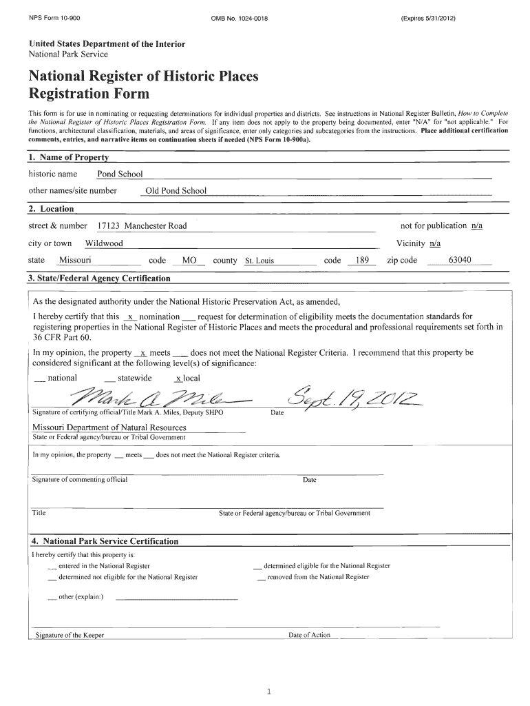 NPS Form 10900OMS No.1 0240018(Expires 5/31/2012)United States Department of the Interior National Park ServiceNational Register of Historic Places Registration Form This form is for use in nominating