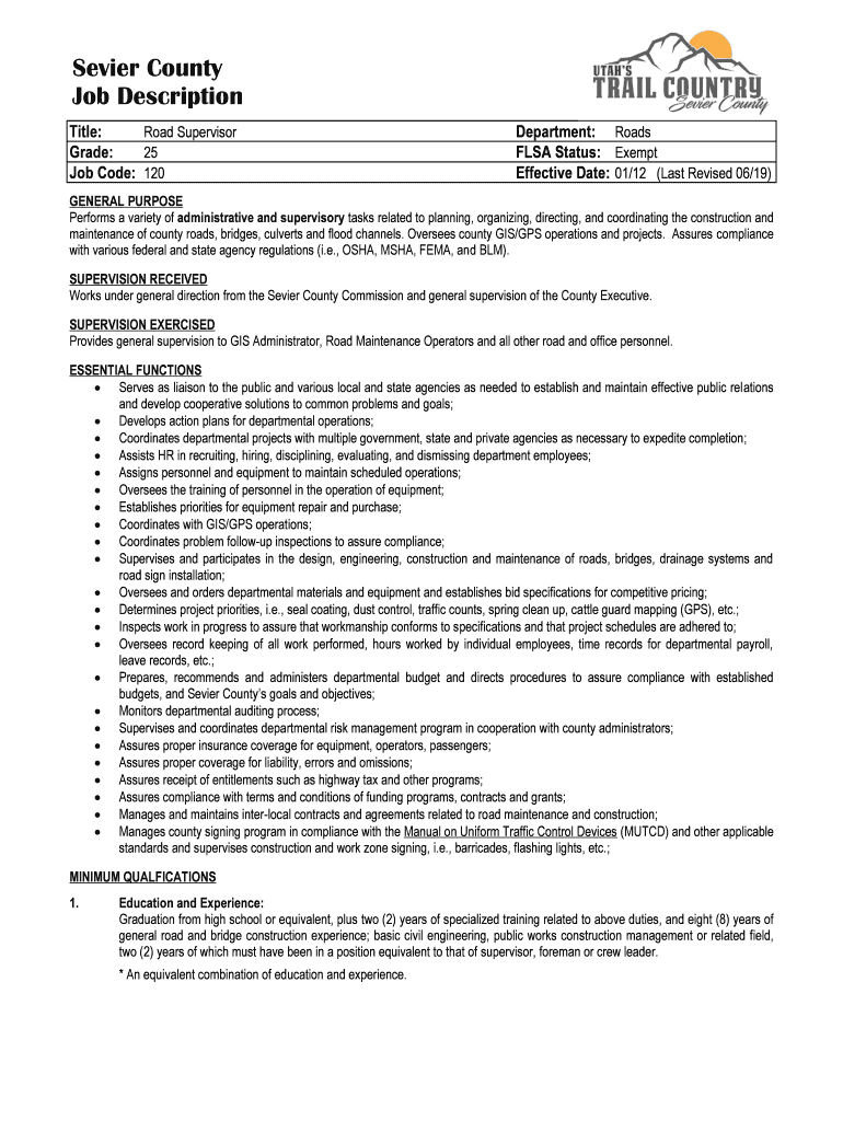 Job Code: 120Department: Roads