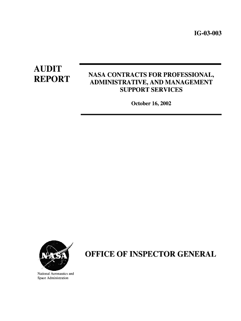 REPORT NASA CONTRACTS FOR PROFESSIONAL,
