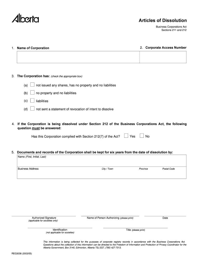 Get the free Articles of Dissolution - Service Alberta