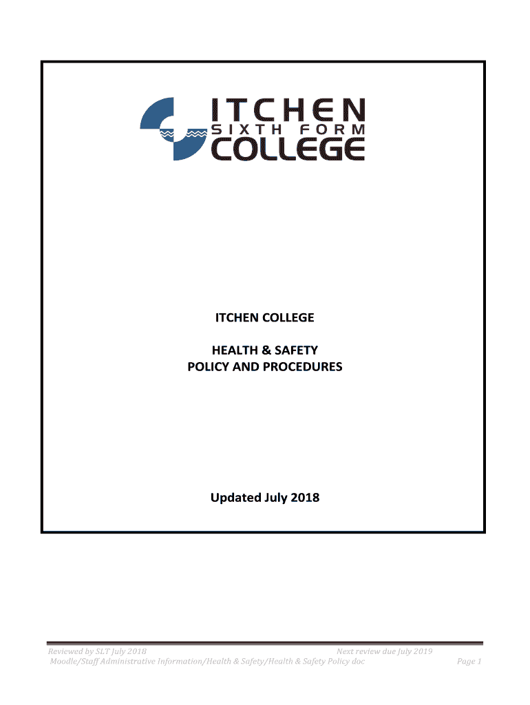 Get the free itchen college health and safety policy - Itchen Sixth Form ...