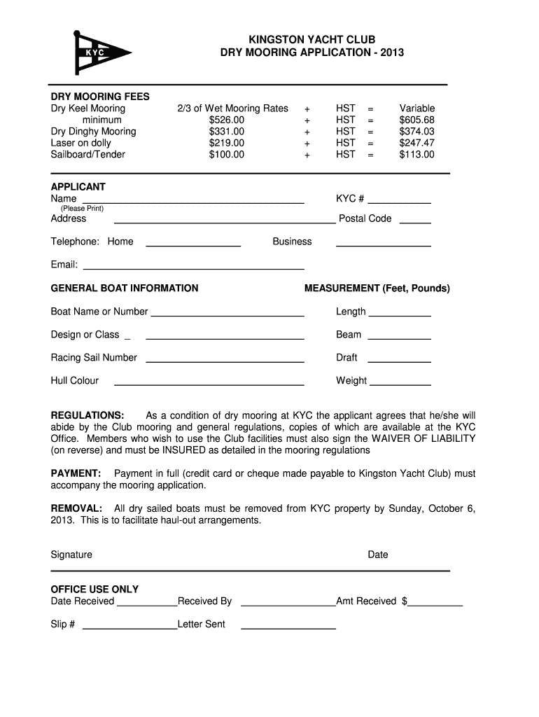 Get the free 2013 dry mooring application - kingstonyachtclub.com
