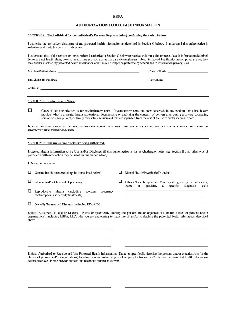 SECTION A: The Individual (or the Individuals Personal Representative) confirming the authorization.