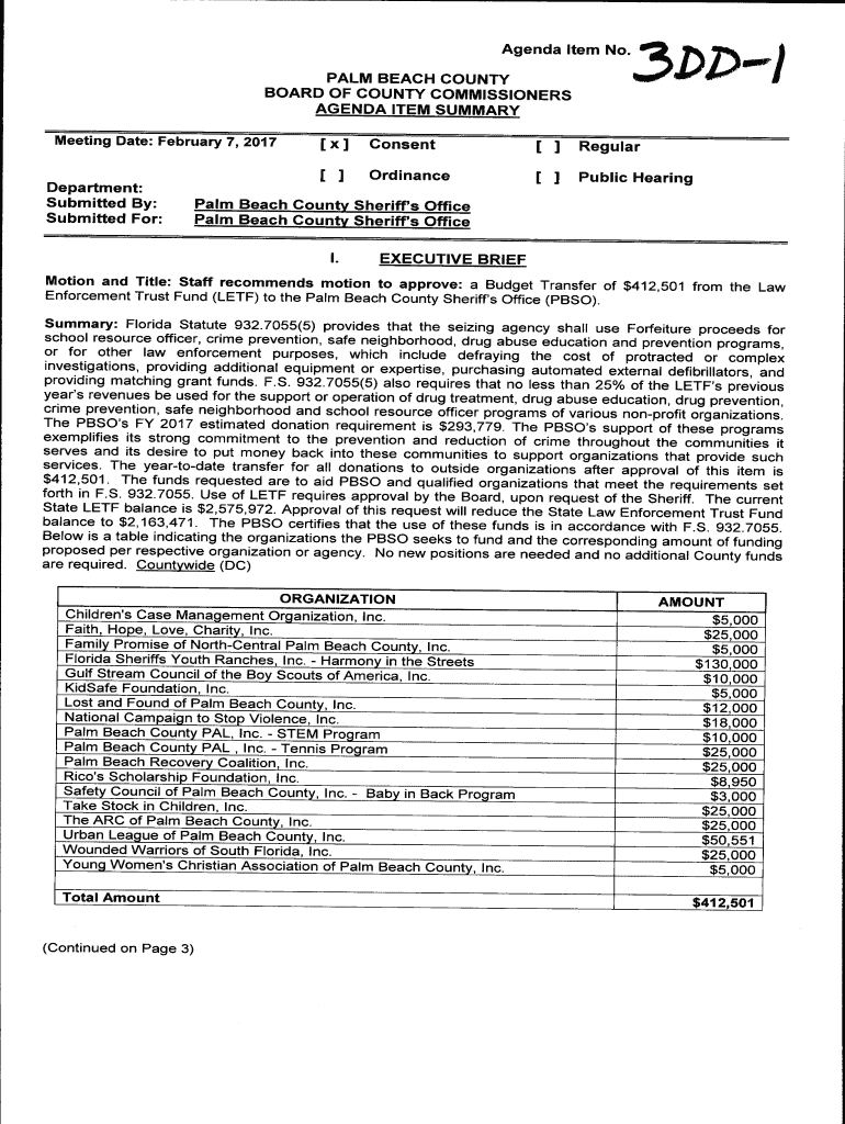 Agenda Item No. PALM BEACH COUNTY BOARD OF COUNTY COMMISSIONERS AGENDA ITEM SUMMARY Meeting Date: February 7, 2017Department: Submitted By: Submitted For: “2.DJ) J., I, x Consent Regular Ordinance