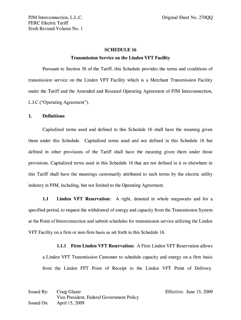 Sixth Revised Volume No. 1Original Sheet No. 270QQSCHEDULE 16