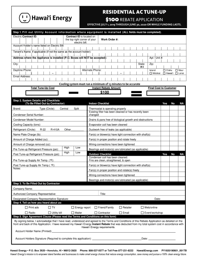 Step 1. F i l l o u t U t i l i t y Ac c o u n t i n f o r m a t i o n w h e r e e q u i p m e n t i s i n s t an l e d (ALL fields must be completed).