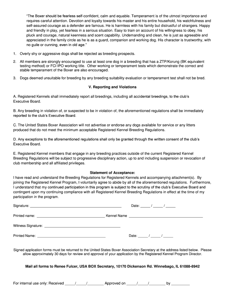 Get the free Breeding Regulations for United States Boxer Association ...