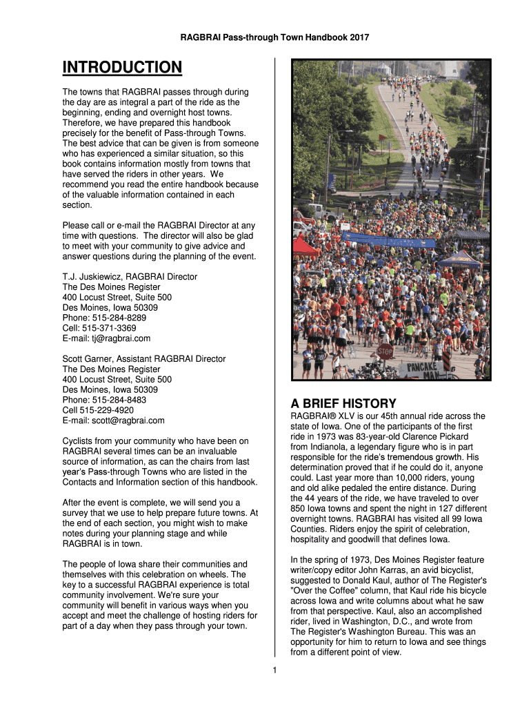 Form Towns That RAGBRAI is a registration form for towns looking to be part of the Register's Annual Great Bicycle Ride Across Iowa.