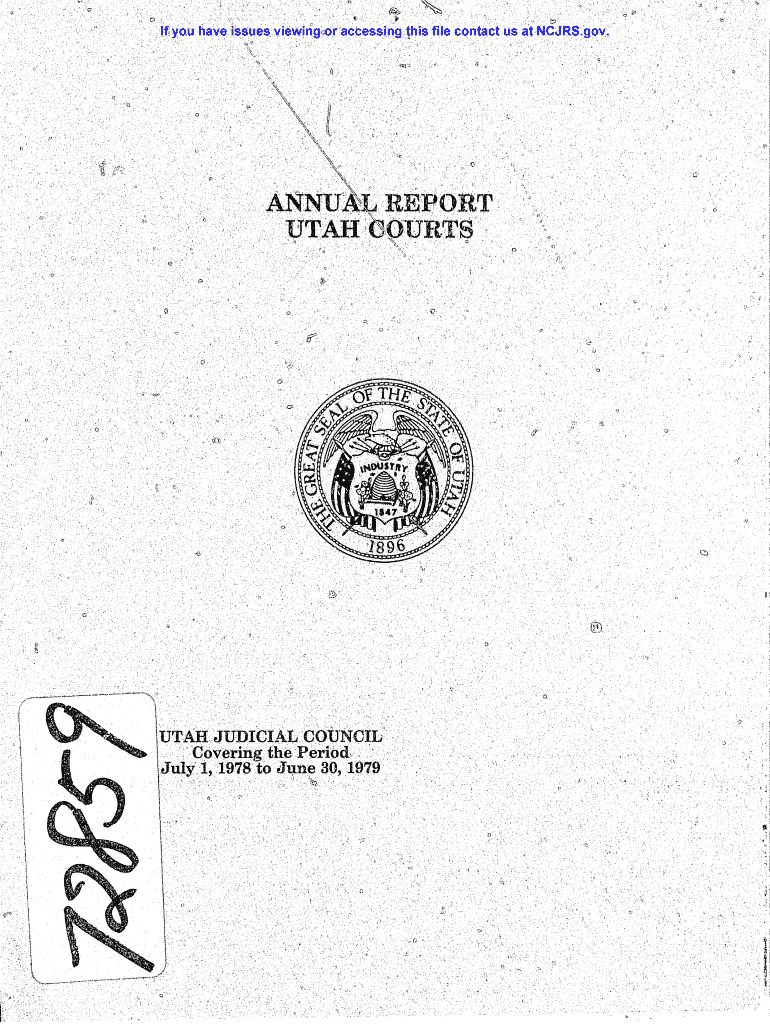 If you have issues viewing or accessing this file contact us at CARS.gov.;. '00, '., '0I 'OSI! I, 1ANlJUAL REPORT UTAH COURTS “II I. I, UTAH JUDICIAL COUNCIL Covering the Period July 1, 1978, to