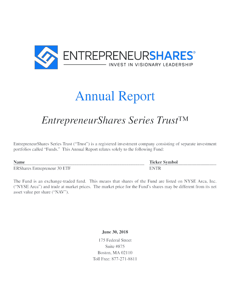Annual Report Entrepreneur Shares Series Trust Entrepreneur Shares Series Trust (Trust) is a registered investment company consisting of separate investment portfolios called Funds. This Annual Report