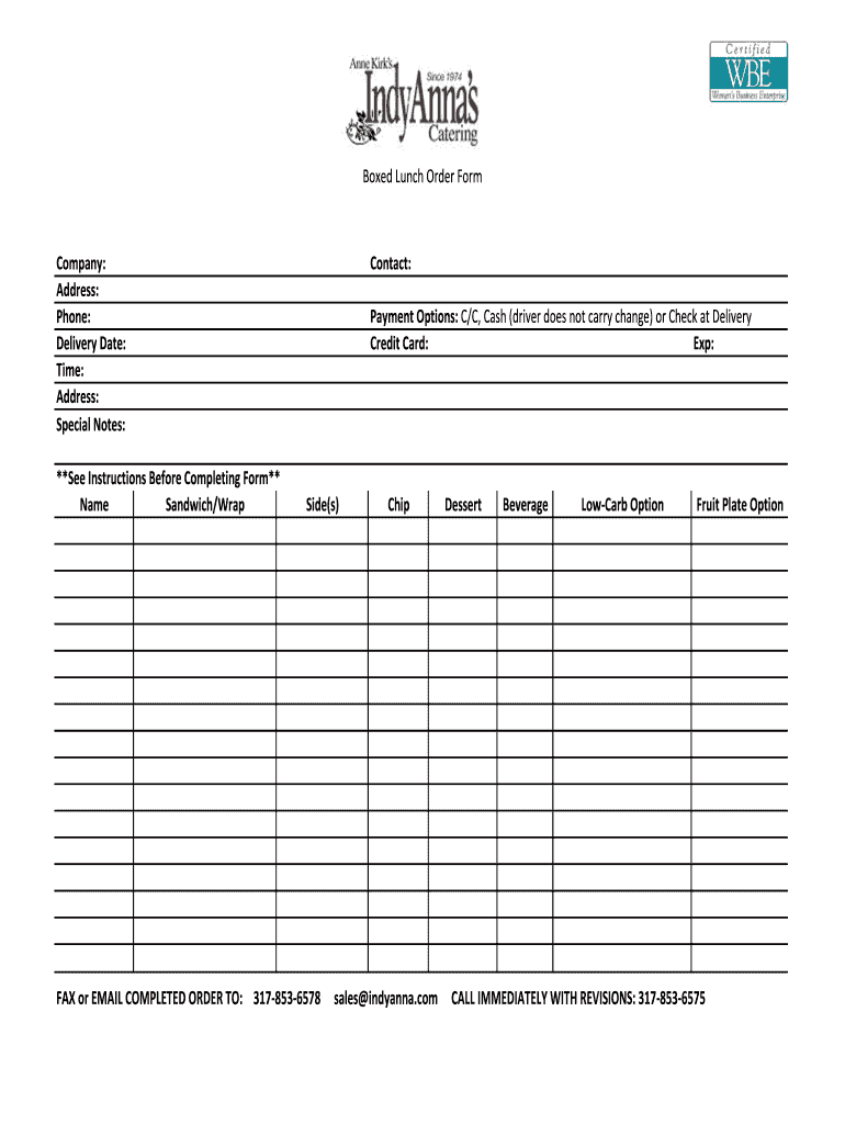 Anyone organizing a group event or gathering that requires catering services may be required to file a box lunch order form.