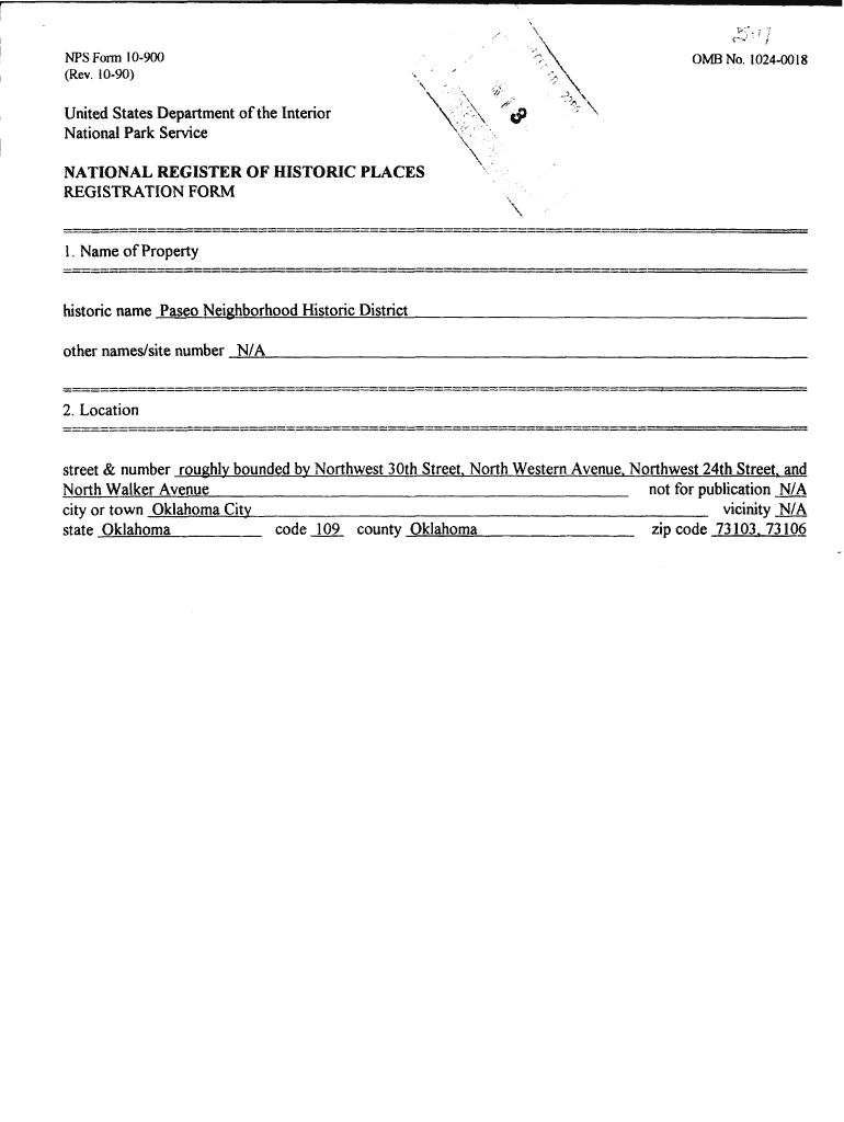 NFS Form 10900 (Rev. 1090)OMB No. 10240018United States Department of the Interior National Park Service NATIONAL REGISTER OF HISTORIC PLACES REGISTRATION FORM 1. Name of Property historic name Pasco