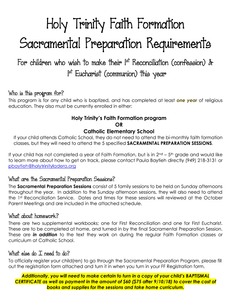 Holy Trinity Faith Formation Sacramental Preparation Requirements For children who wish to make their 1st Reconciliation (confession) & 1st Eucharist (communion) this Erewhon is this program for?