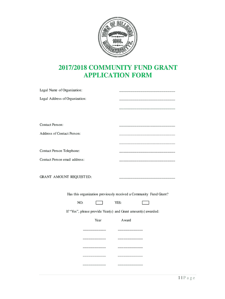 Get the free 2017/2018 COMMUNITY FUND GRANT APPLICATION FORM