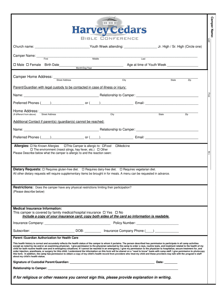 Scamper Name: First Male FemaleMiddleLastBirth Date Age at time of Youth Week Month/Day/YearCamper Home Address: Street AddressCityStateZipParent/Guardian with legal custody to be contacted in case