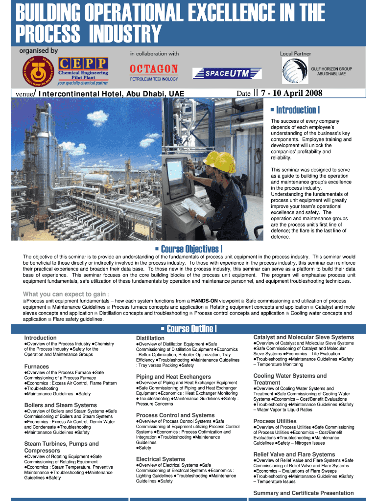 BUILDING OPERATIONAL EXCELLENCE IN THE PROCESS INDUSTRY venue/ Intercontinental Hotel, Abu Dhabi, UAE Date 7 10 April 2008 Introduction The success of every company depends on each employee's understanding