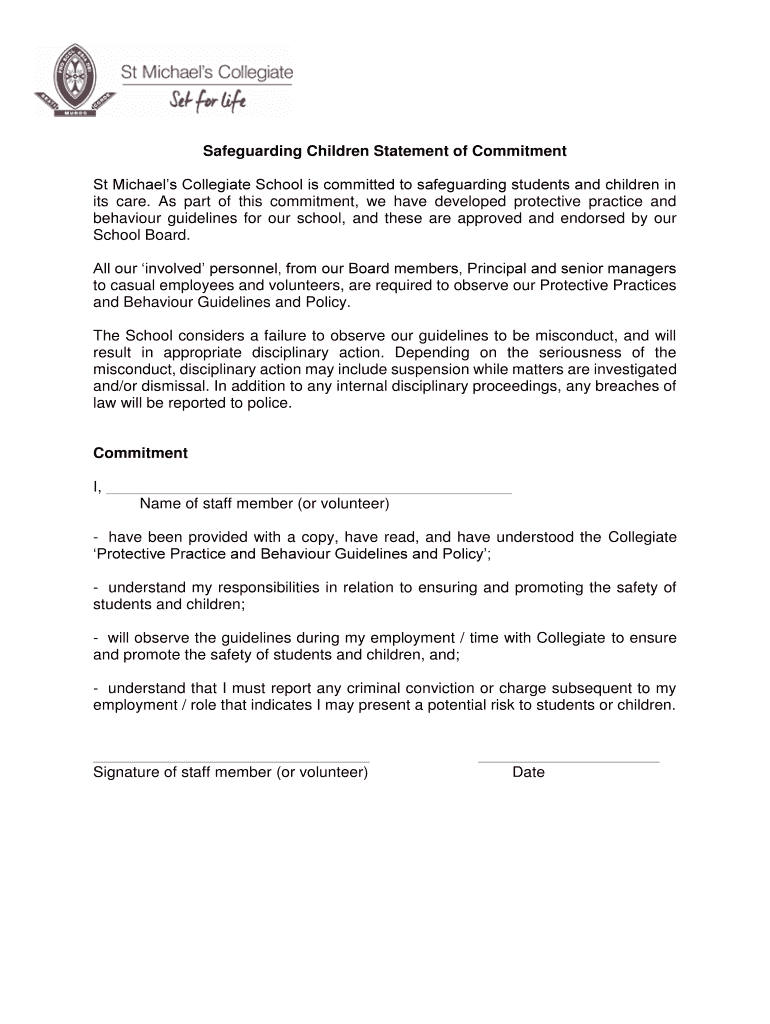 Get the free Safeguarding Children Statement of Commitment St Michael's ... - collegiate tas edu