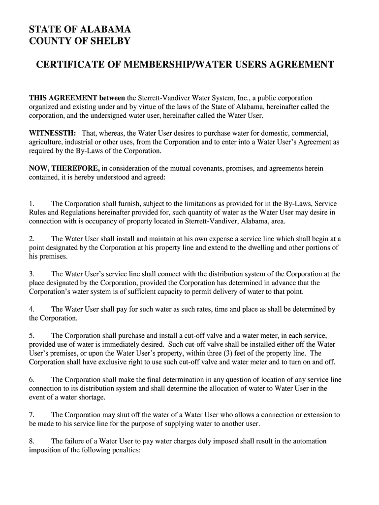 CERTIFICATE OF MEMBERSHIP/WATER USERS AGREEMENT