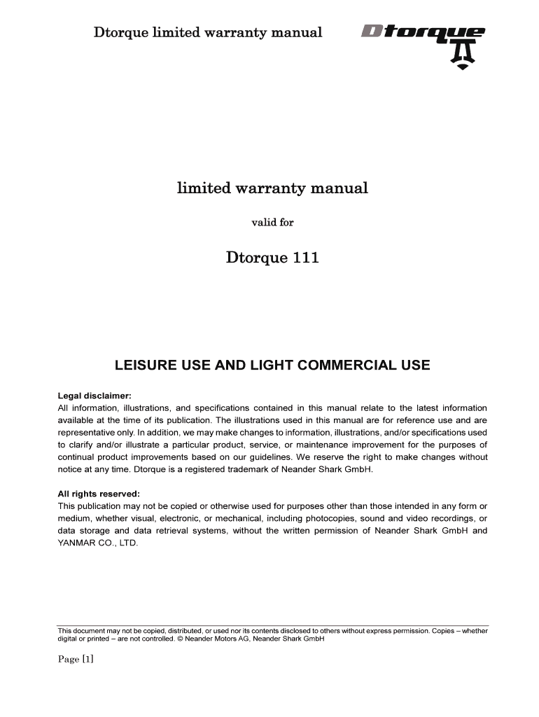 Get the free limited warranty manual Dtorque 111 - Yanmar Marine
