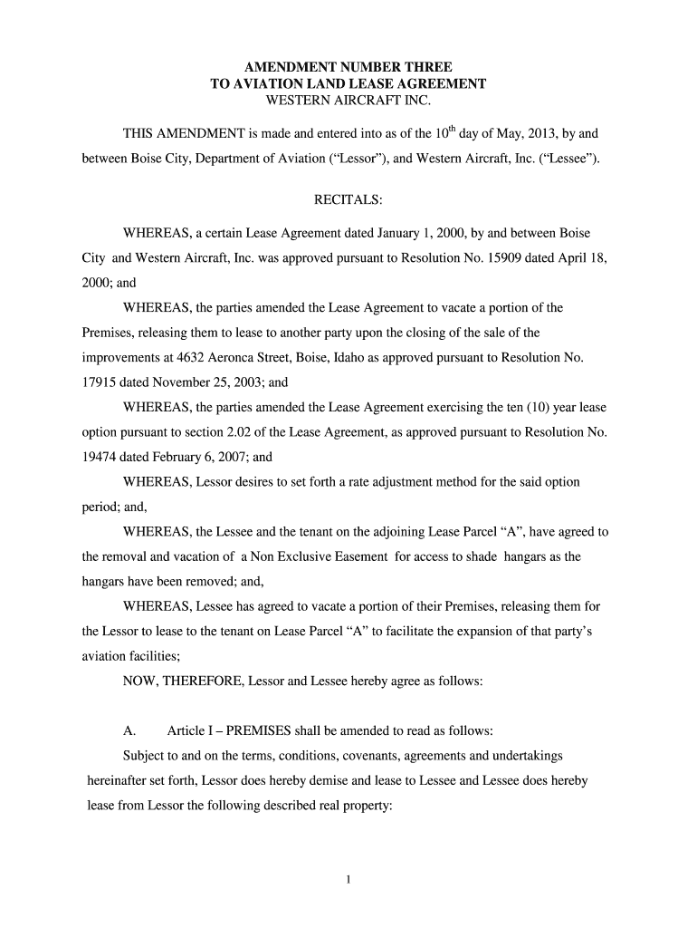 THIS AMENDMENT is made and entered into as of the 10th day of May 2013, by and