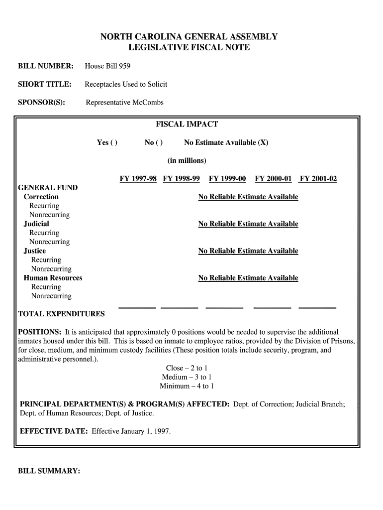 Get the free north carolina general assembly legislative fiscal note